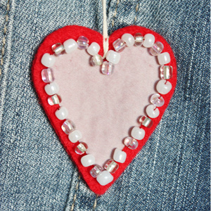 - Kiinnitä ripustuslanka: Pujota neulanpistolla lanka huovan läpi ja solmi päät. Jos kiinnität heijastimeen neulan, liimaa se huolellisesti. Avainlenkkiin heijastin pujotetaan varovasti, ettei huopa repeä. Jos lenkki on kovin tiukka, pyydä apua vahvasormiselta.