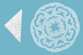 - Leikkaamalla kuvioita myös ulkoreunaan voit tehdä hiutaleista eri muotoisia: pyöreitä, kukkasia tai vaikka tähtiä. Ulkoreunan voi myös hapsuttaa.