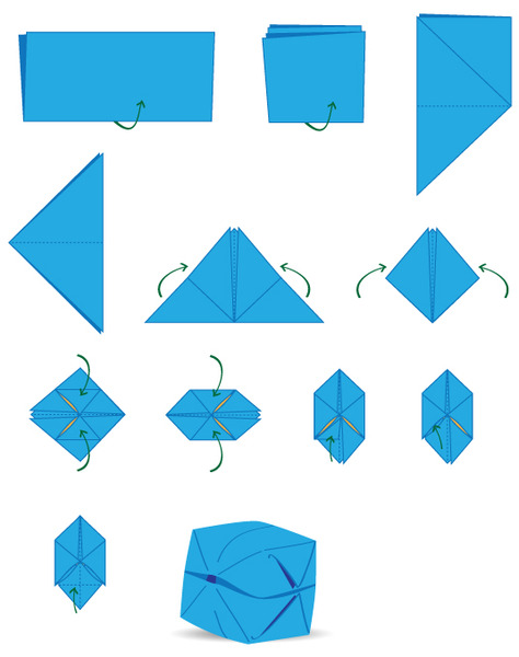 Origami on japanilaista paperintaittelua. Paperi-ilmapallon ohje yllättää tekijänsä, kun taiteltu paperi pullistuu puhaltamalla kuutioksi!