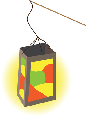 - Ota lyhyt puukeppi. Pyydä aikuista vuolemaan lähelle kepin päätä pieni lovi. Solmi siihen n. 20 cm:n pätkä narua. Solmi lyhdyn ja kepin narut yhteen. Käännä virta päälle kynttilään.