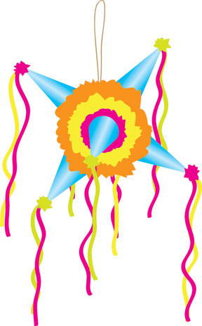 PIÑATA on pahvikuorinen, koristeltu säiliö, johon kätketään pieniä yllätyksiä ja makupaloja. Se ripustetaan kattoon. Juhlijat saavat vuorotellen yrittää rikkoa piñatan kuorta kepillä. Kun joku saa reiän syntymään, karkit putoilevat juhlijoiden saataville.