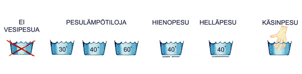 - Sitten salapoliisityöhön. Etsi vaatteista pikkuiset laput, joista löytyvät pesuohjeet. Lajittele pyykit pesulämpötilan mukaan. (30, 40, 60, 90 ja käsinpesu)