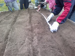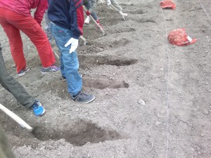 Seuraavana päivänä pääsimme nauttimaan sipulin ja purjosipulin istuttamisesta sekä kylvämään punajuuria lavoihin. Keskiviikosta muodostuikin oikea kunnon mutakeli, sillä kesken kurpitsojen ja maissien istuttamista tuli rankkasade, joka kasteli koko poppoon. Toivotaan kuitenkin, että kesästä tulee vähäsateinen ja lämmin.