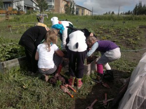 Lastenpuutarha Piparmintun kasvukausi vuonna 2015 on nyt virallisesti päättynyt. Tänä sateisena torstaiaamuna puutarhalla riitti kuitenkin vielä vilinää, kun Tampereen Rudolf Steiner –koulun kakkosluokkalaiset kävivät kasvimaalla tekemässä viimeiset sadonkorjuut. Perunaa nostettiin oikein urakalla ja kaikki saivat satoa kotiin vietäväksi.