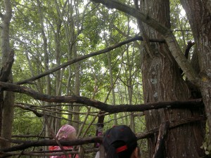 Metsikössä valmisteltiin teatteria ja rakennettiin katsomoa ja majaa.