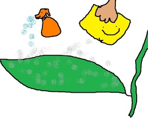 - Voit käydä lehdet läpi myös nihkeällä pyyhkeellä ja sumuttaa lehtikiiltoa, joka hylkii pölyä ja poistaa mahdolliset tahrat lehdistä.