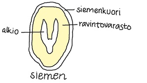 Siemenkuori suojaa siementä ja turpoaa veden vaikutuksesta.